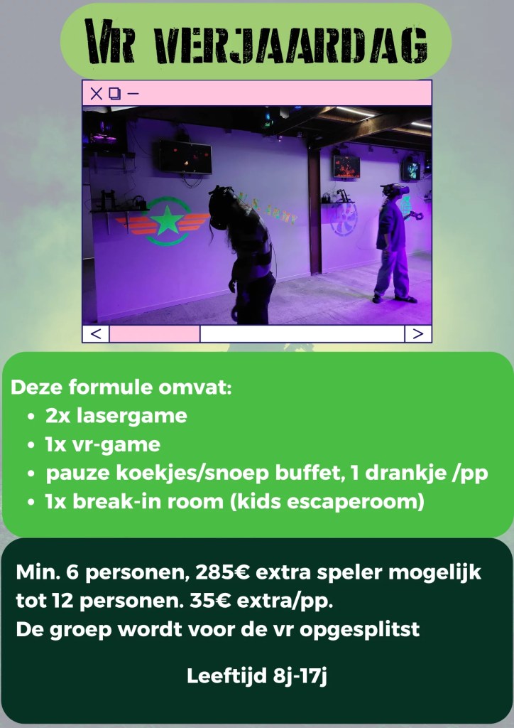 Organiseer een uniek verjaardagsfeest bij Funbase in Tienen! Kies uit lasershooting, VR-game, escape rooms. Perfect voor verjaardagen, teambuildings of vrijgezellen. Boek vandaag nog jouw avontuur voor kinderen, volwassenen of bedrijven!